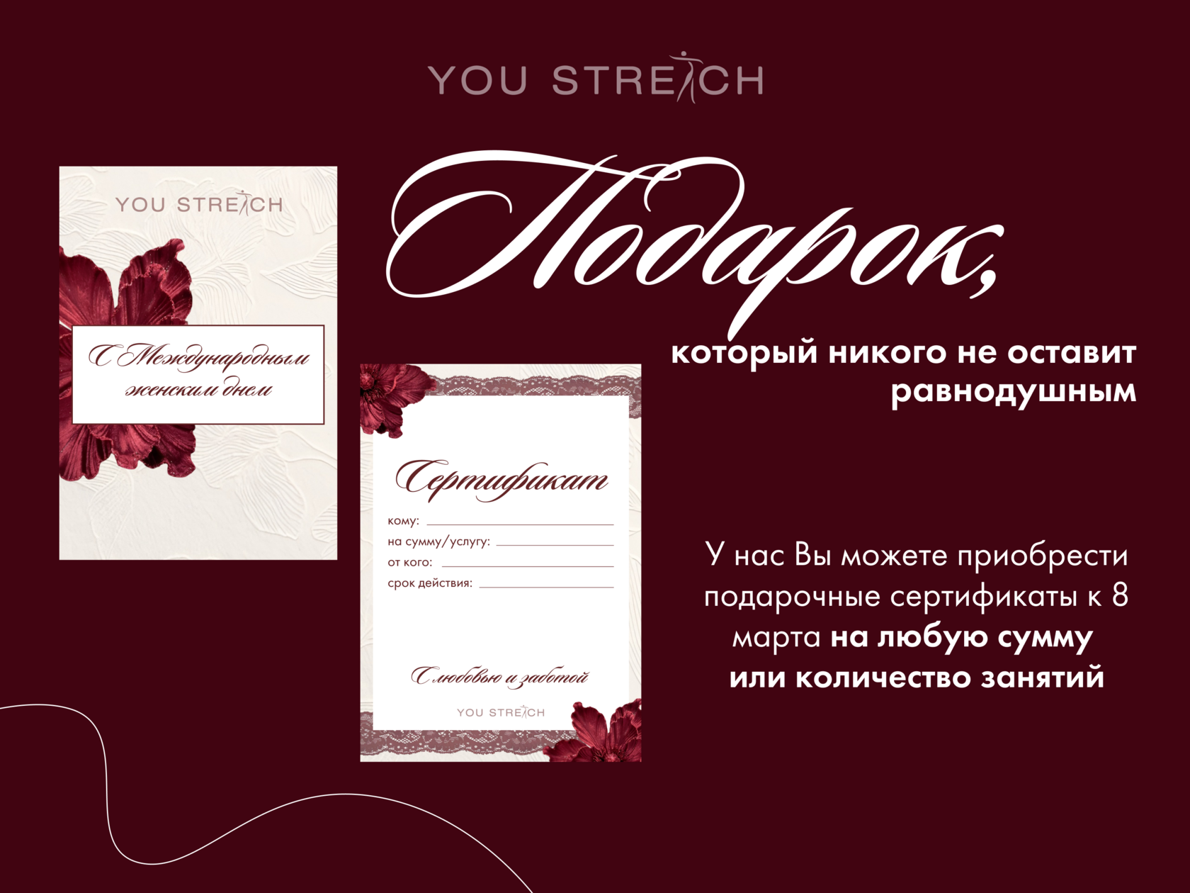 Приобретите подарочный сертификат, оформленный в праздничном стиле, на любое количество занятий из нашего прайса!